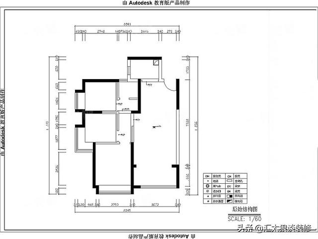 这是一套使用面积70平两房,是很常见的“田”字形布局,开门直面对厕所,通常以厕所为中心线,两边均分,朝南是客厅和主卧,朝北是餐厅和次卧。厨房空间狭小,利用率不高,一楼采光差也是每个家的通病。