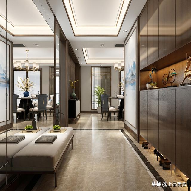 165平中式风,主卧室用玻璃衣柜柜门,有种橱窗的感觉,很有个性